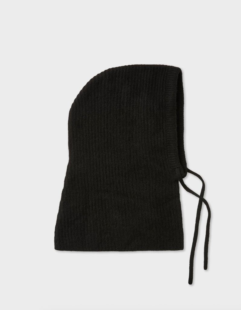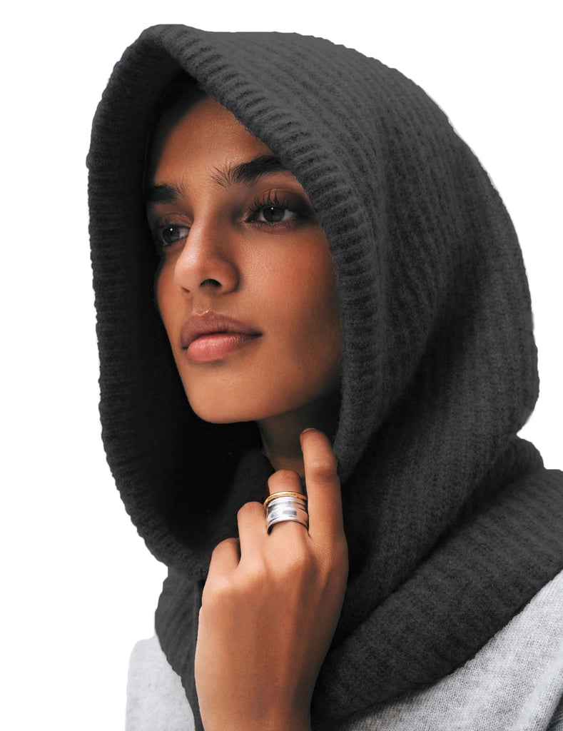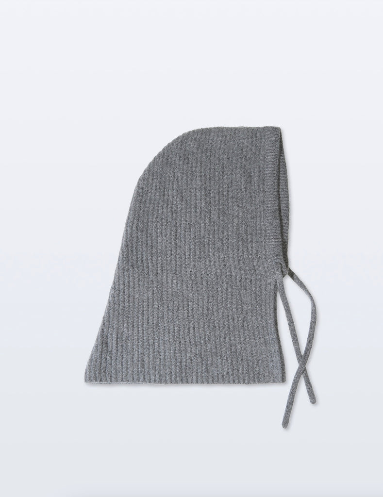 A refined cold-weather accessory. Knit in ribbed cashmere with an oversized hood, functional tie, and structured trim, it offers both warmth and modern edge!