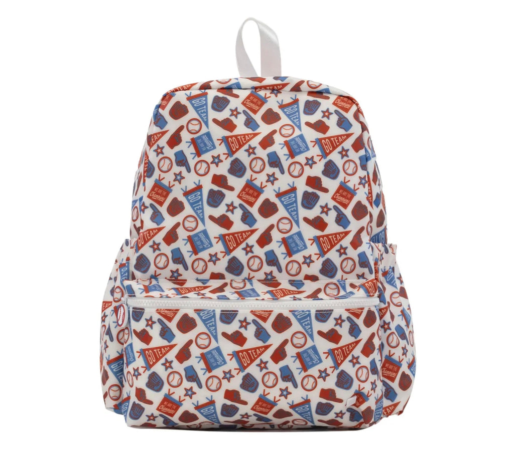 The TRVL Designs backpack is a best-seller for a reason! Made out of their signature coating that is soft, lightweight, and water resistant! Equipped with a 2-way zip main compartment that is roomy enough for folders, lunch bags, and a nice front zip for everything else!