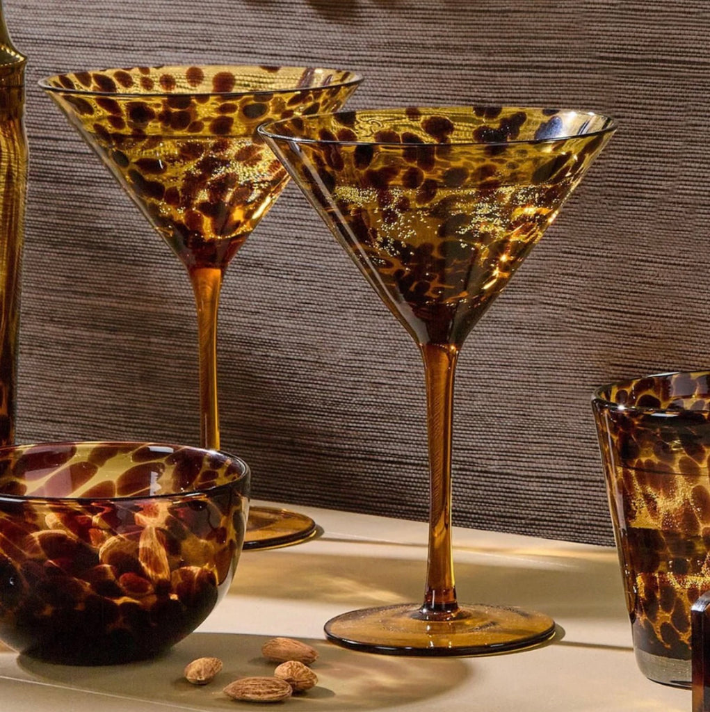 Elevate your cocktail hour with these stunning tortoise Print Martini Glasses. Each glass boasts a unique tortoise print, adding a touch of sophistication to any gathering. Handcrafted with care, these glasses are not only visually appealing but also durable. Perfect for serving up your favorite martinis or cocktails, these glasses are sure to impress your guests!
