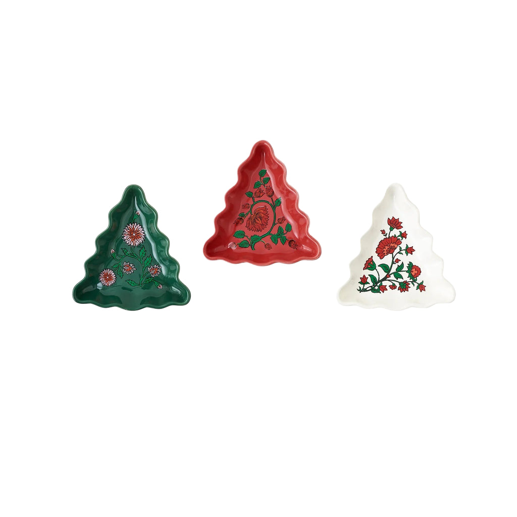 Serve up holiday cheer with these festive Spice Trail tree-shaped dishes! Available in three assorted colors with intricate floral patterns, each dish adds a touch of seasonal charm to your table. Perfect for appetizers, candies, or small holiday treats, they bring both function and festive flair to your entertaining.