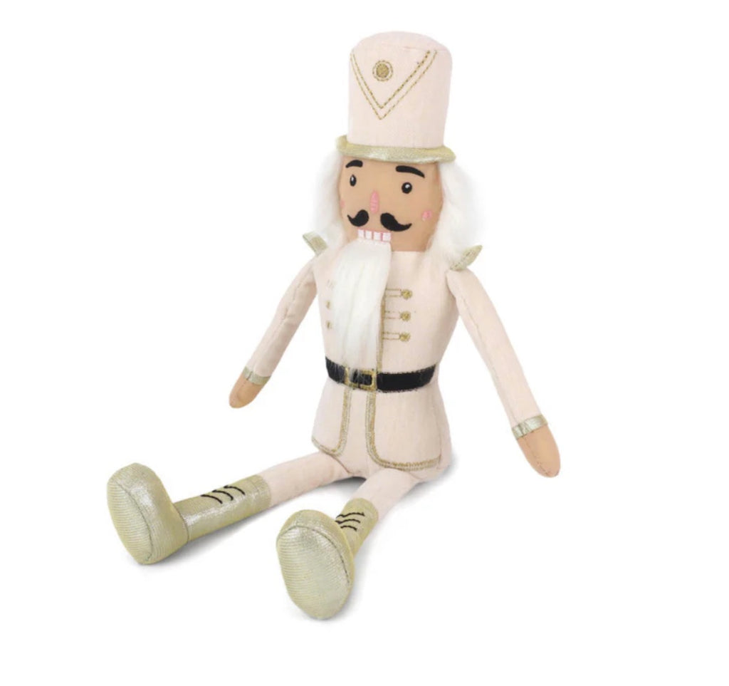 Dressed in elegant Cream and Shimmering Gold, this plush holiday nutcracker is ready to march straight into your festive celebrations! With his soft, huggable form and charming embroidered details, he brings a touch of classic holiday magic with a cozy, modern twist.