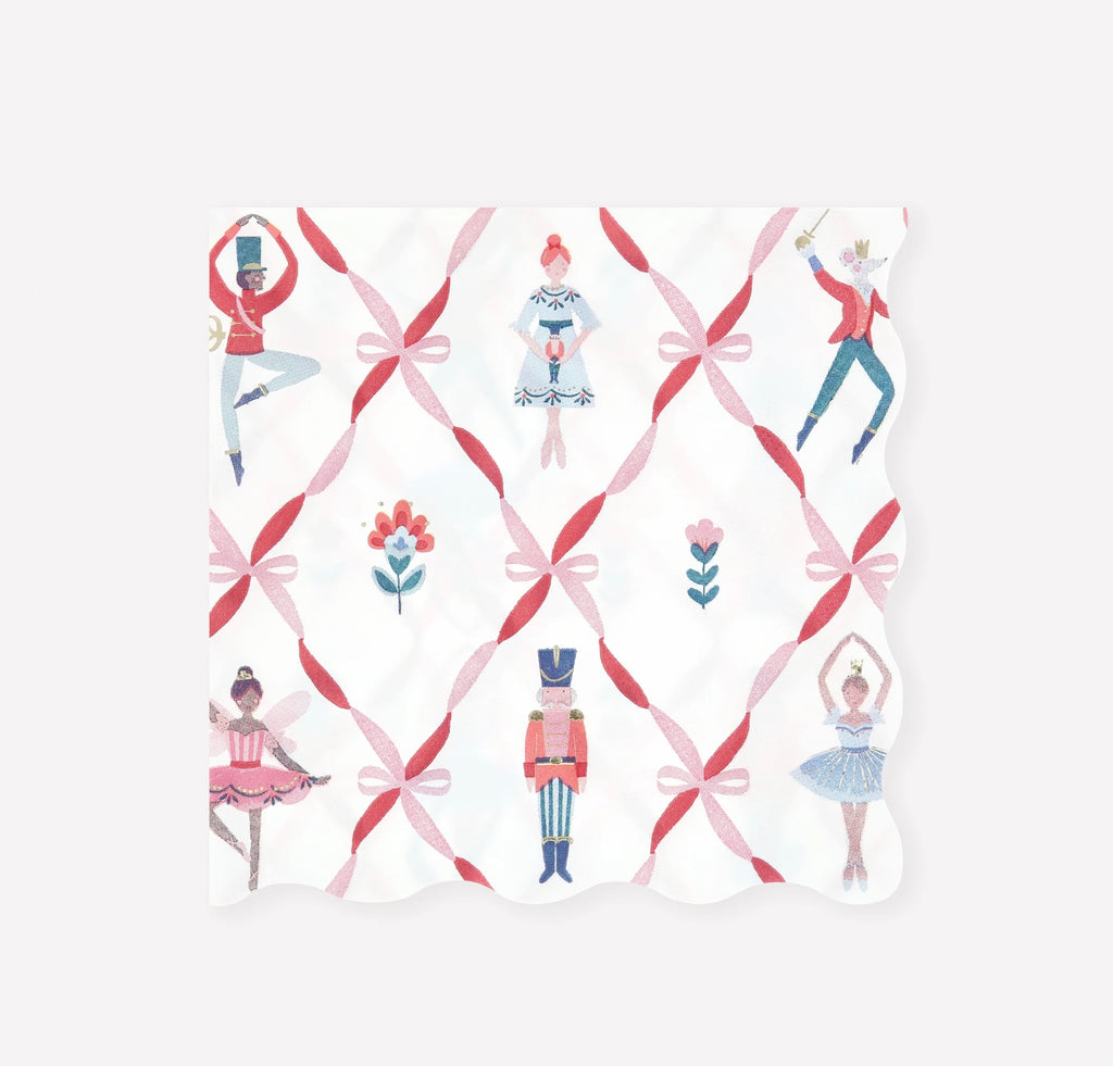 Bring the timeless magic of the Nutcracker ballet to your party table with these premium paper napkins. They feature iconic characters and fashionable bows, in a stylish blend of classic and modern Christmas colors, to effortlessly capture the charm of this enchanting fairy tale. A chic and practical way to add a touch of tradition to your celebrations.