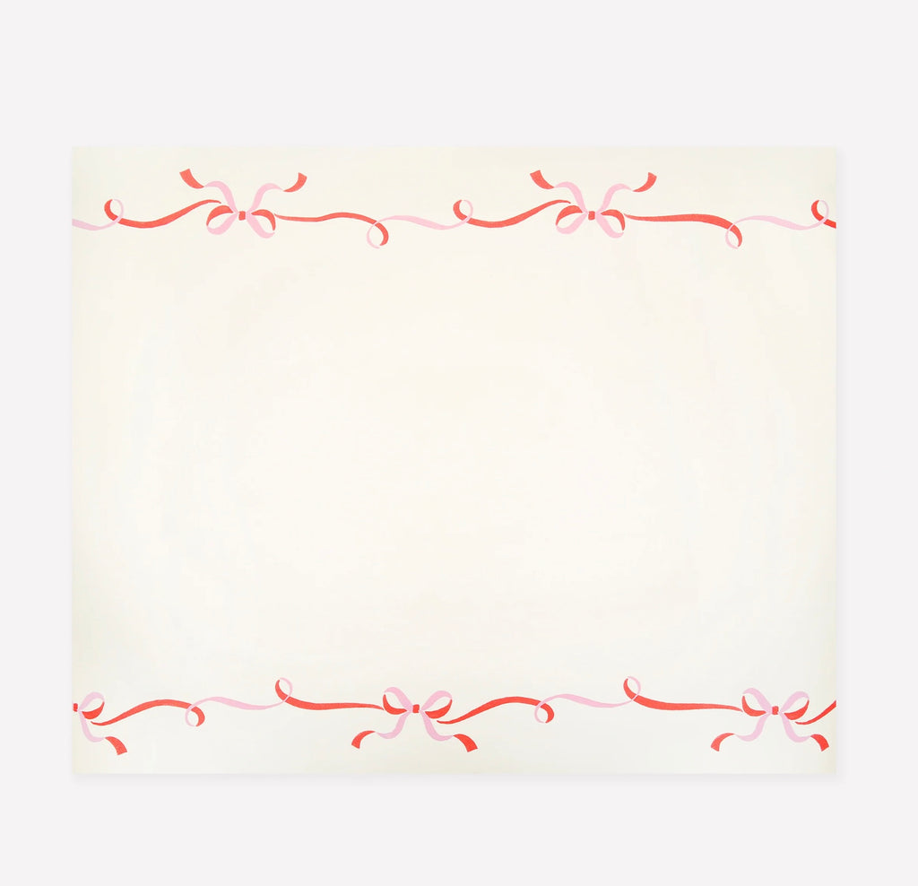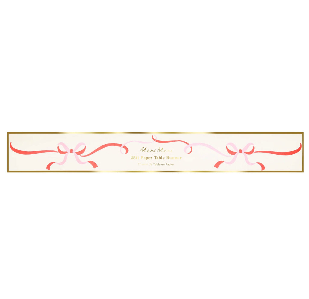 Pink and red ribbon bows are the perfect tableware design for an effortlessly chic Christmas table. The rich warm red brings classic festive charm, the soft pink gives a contemporary twist, and the bow design adds fashionable flair. This paper table runner is perfect to instantly add a stylish touch to your meal. It comes in a long piece, ready for you to cut to size!