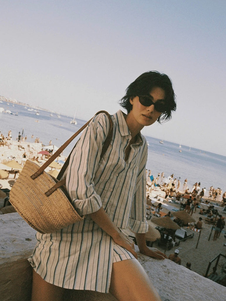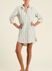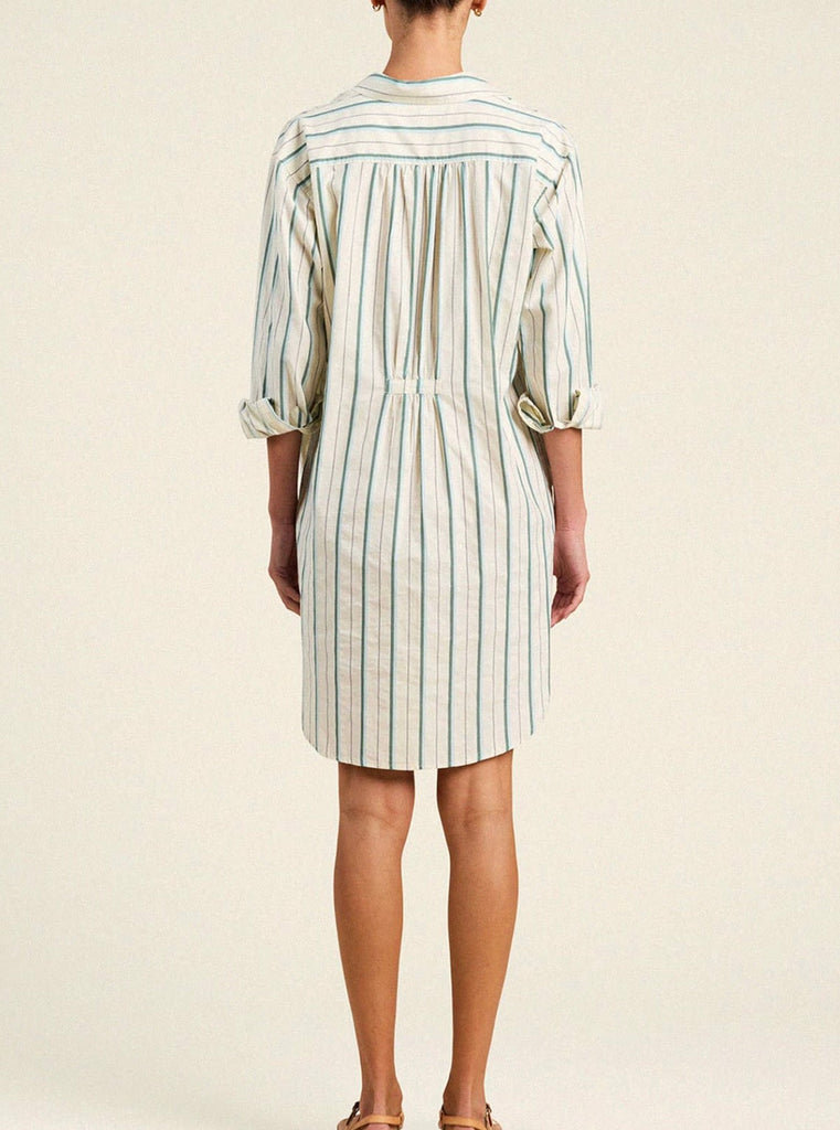 The Callie Shirtdress is a short shirtdress with a covered front button placket, folded collar and full length sleeves with gathered cuffs. Featuring our signature fabric tab gathers at the back waist for added shape, and hidden side seam pockets.