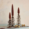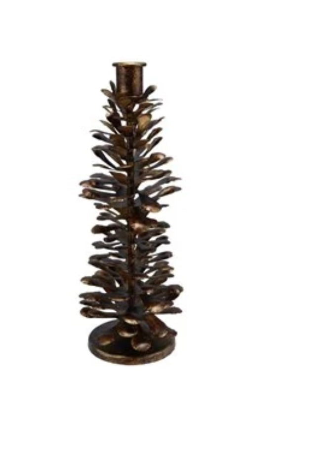 Metal Pinecone Shaped Taper Holder, Antique Gold Finish, Large