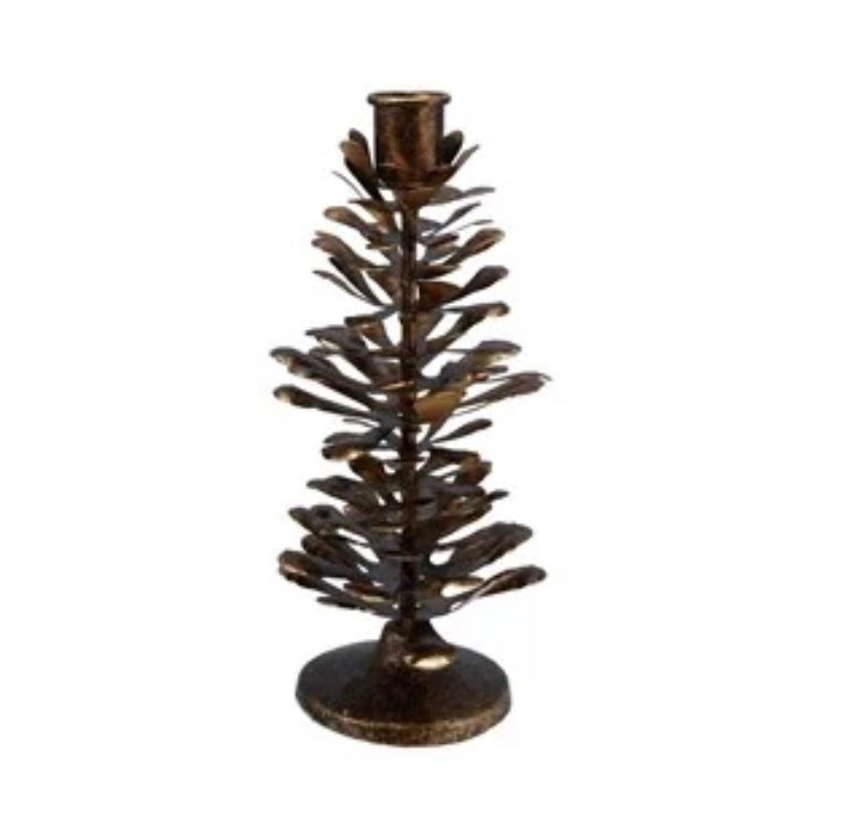 Metal Pinecone Shaped Taper Holder, Antique Gold Finish, Medium