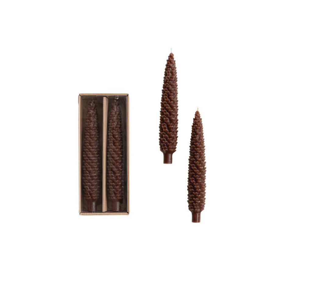 Unscented Pinecone Shaped Taper Candle in Box Brown, Set of 2