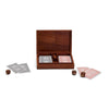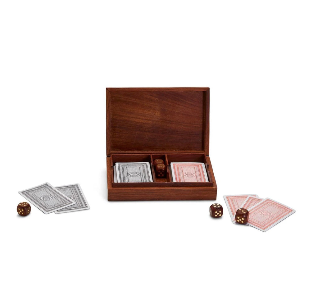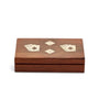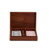With the popularity of card and dice games, this acacia wood hinged box provides easy access to a wonderful quality card and dice set. Each box has a soft and polished finish with card and dice brass inlays.