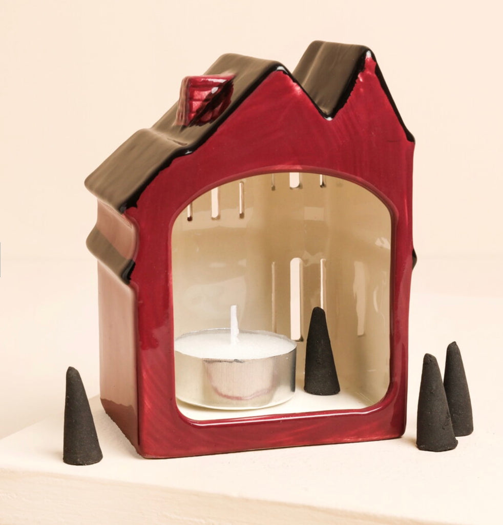 This spooky Mystic Manor is the cutest addition to your decor! Hand painted and packaged with 20 incense cones and 1 tea light. It has been crafted to allow incense smoke to smolder through the backside, and for candlelight to flicker through the windows, perfect for creating a warm and inviting atmosphere.