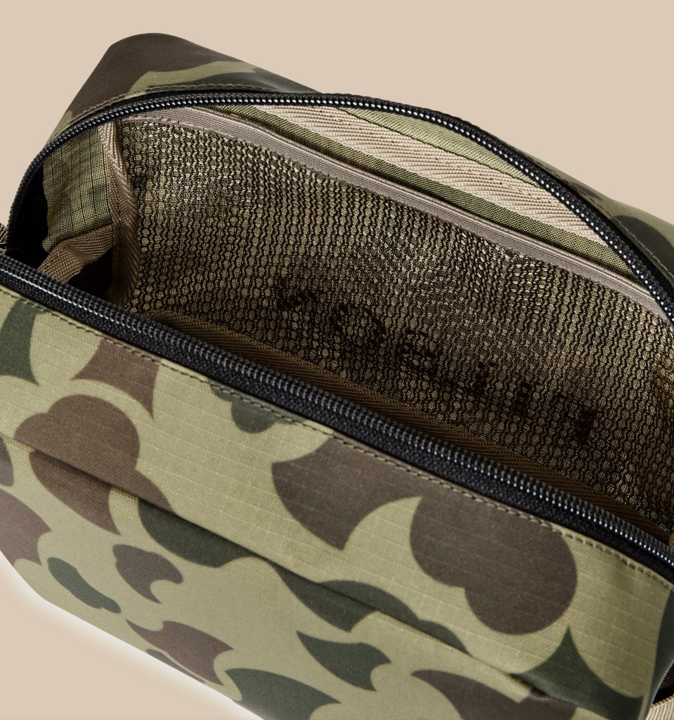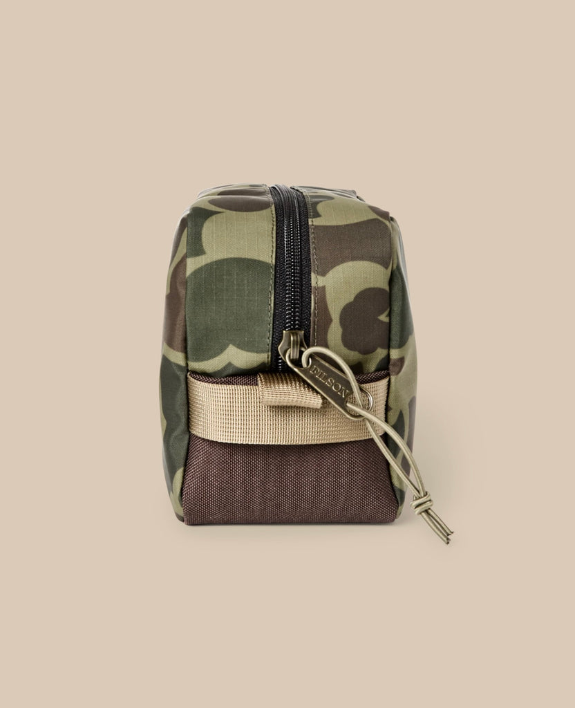 This Dopp kit is built from 300D recycled polyester that's coated with TPU for exceptional water resistance. It sheds rain, spills, and splashes with ease. The base is reinforced with heavier 600D recycled polyester, also TPU-coated, for added structure and long-term durability. Inside, two organizing pockets keep small items in place. One is mesh for quick visibility, and one secures with a zipper. The interior is fully lined to help contain leaks and make cleanup easy.