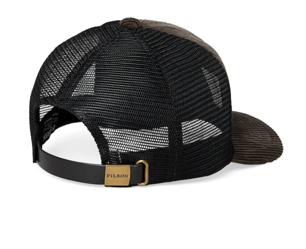 The Filson Mesh Logger Cap keeps the sun off your face while allowing airflow for breathability. The front panels are built with durable 100% cotton 8-wale corduroy, and the rear with polyester mesh. Adjustable leather backstrap for a custom fit. 6-panel crown.