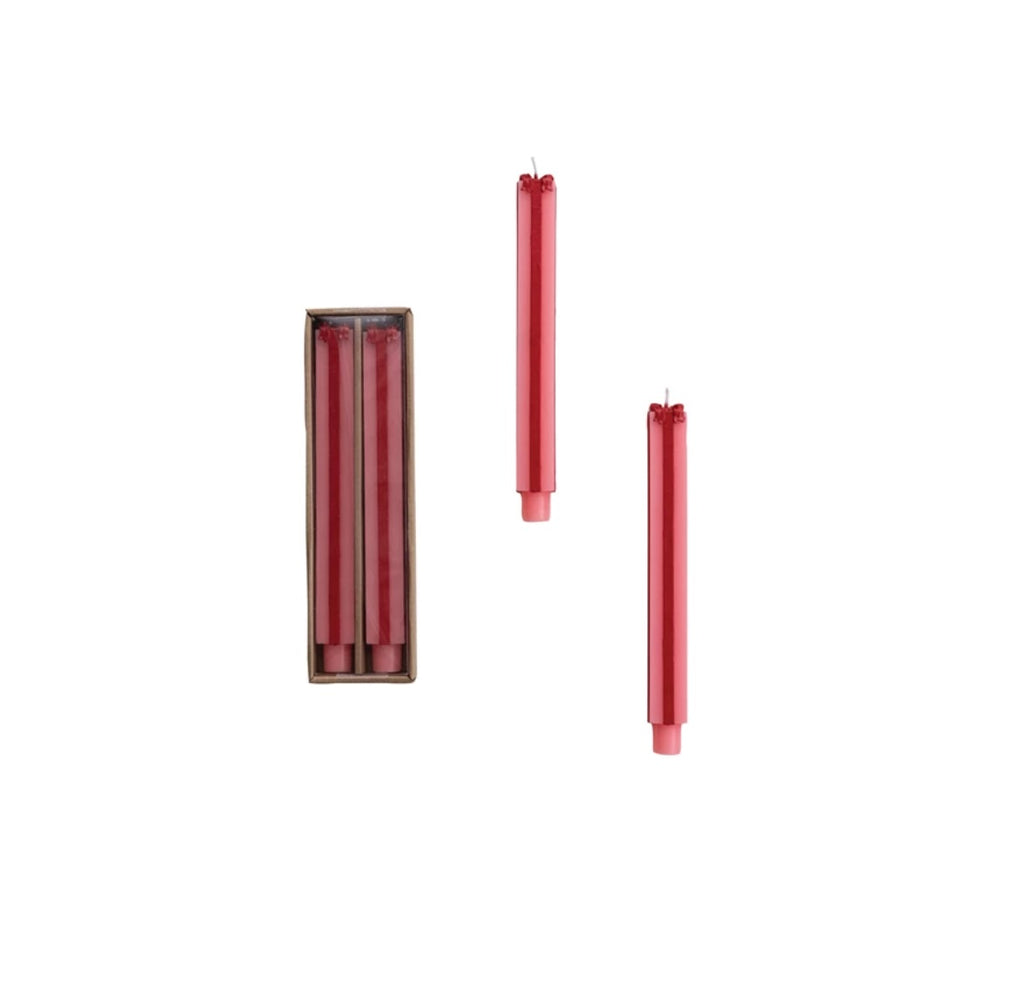 Unscented Package Shaped Taper Candles in Box, Pink & Red, Set of 2