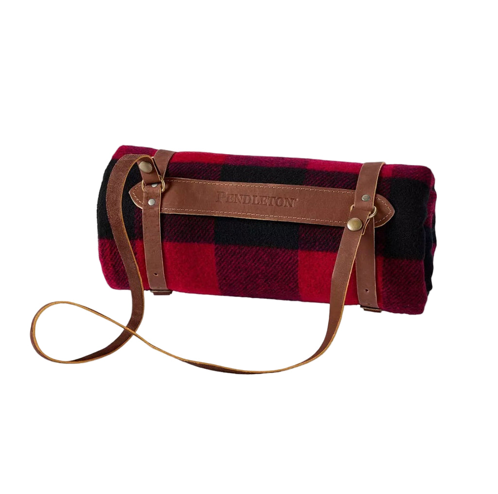 Pure virgin wool throw is softly napped and the perfect size to curl up with on the sofa or toss in the car. Each one is still woven in our American mills and comes with a convenient leather carrier. Called steamer rugs during the early 20th century, these blankets were a warm, welcome companion for those who traveled by horse-drawn carriage, train or boat.