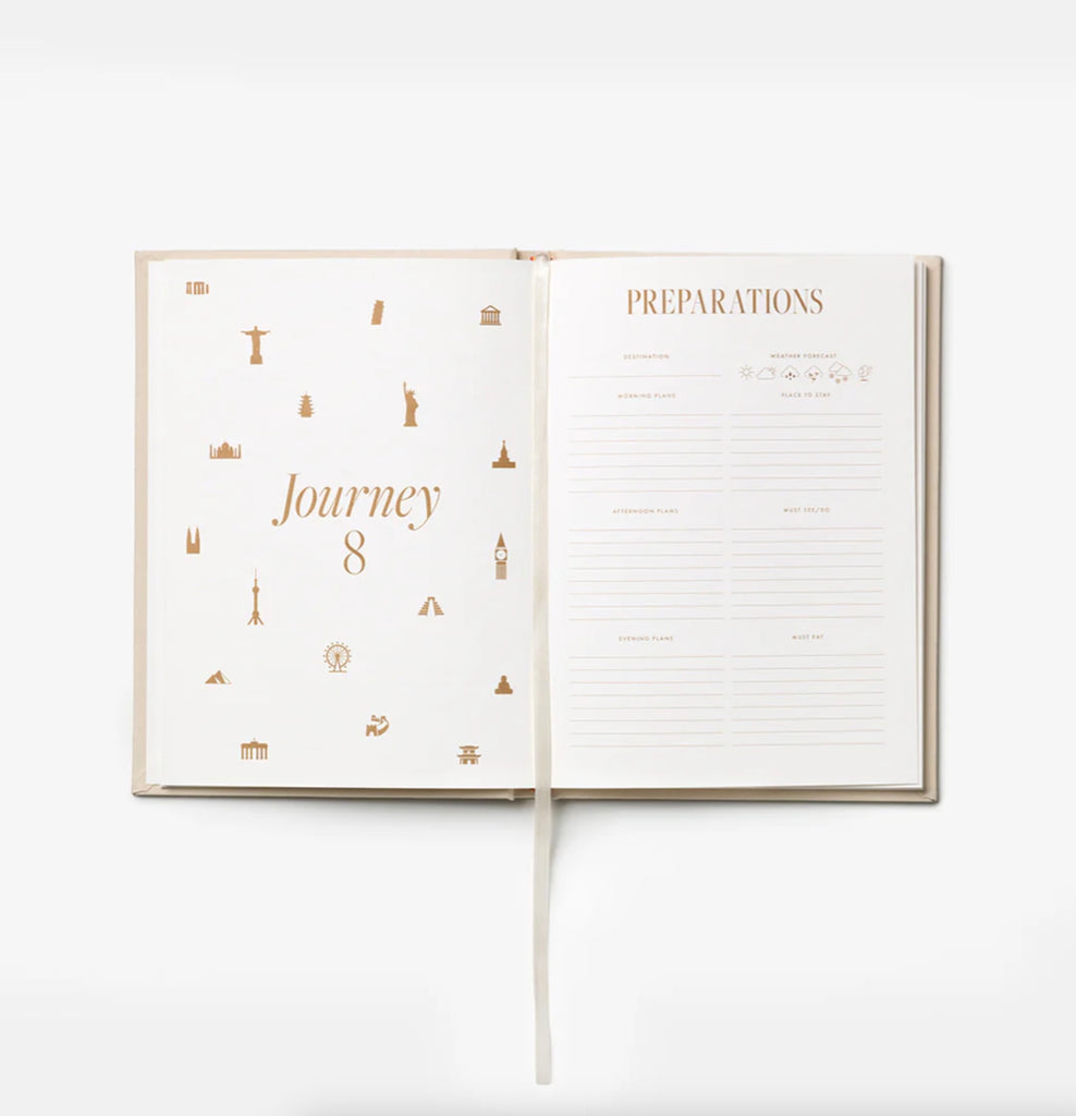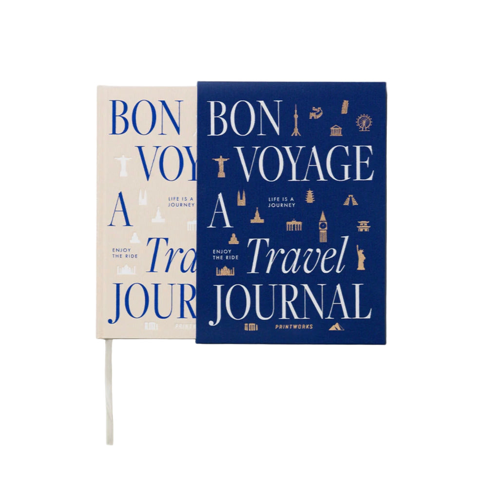 Capture every detail of your adventures with the Bon Voyage Travel Journal. Featuring a beautiful blue and beige cloth-bound cover, this journal is designed to help you prepare for your journey and reflect on your travels, ensuring your experiences are preserved for years to come!