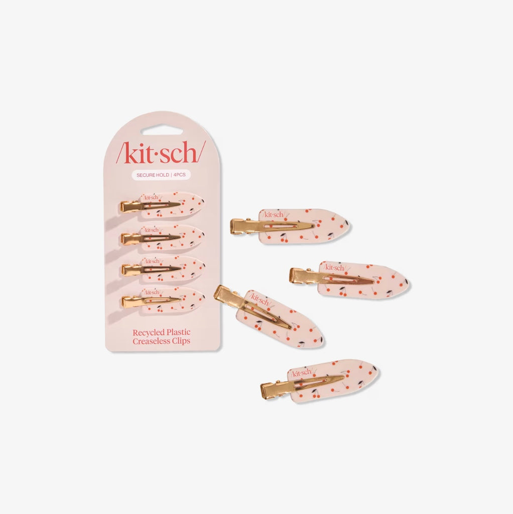 Keep your hair out of the way while doing your makeup with these ultra-chic Kitsch Creaseless Clips. The fun Cherry Print adds a pop of color while securing your hairstyle without creases or damage!