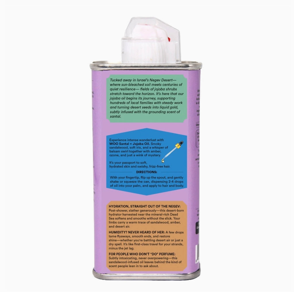 A lightweight, fast-absorbing jojoba oil for softening, smoothing, and deeply hydrating hair, skin, and nails—without the greasy feel. Infused with fresh top notes of ozone, middle notes of violet iris and balsam, and woodsy rich base notes of sandalwood, leather and amber.