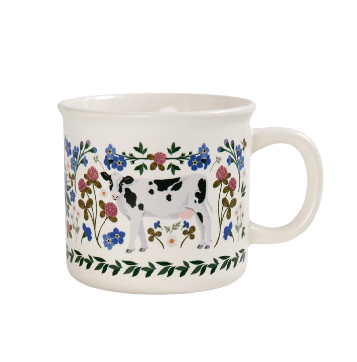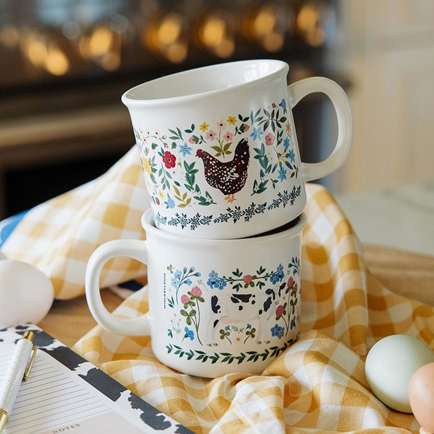 Sip your favorite beverage in style with our Milk Cows Folk Floral Mug! This charming large ceramic mug beautifully combines the rustic charm of farmhouse living with the delightful imagery of Holstein cows and a whimsical cottage floral design.
