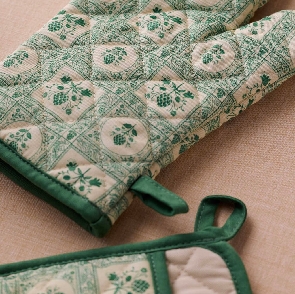With contrast piping and a corner loop for hanging, our quilted oven mitts protect from heat while doubling as a charming kitchen accent!