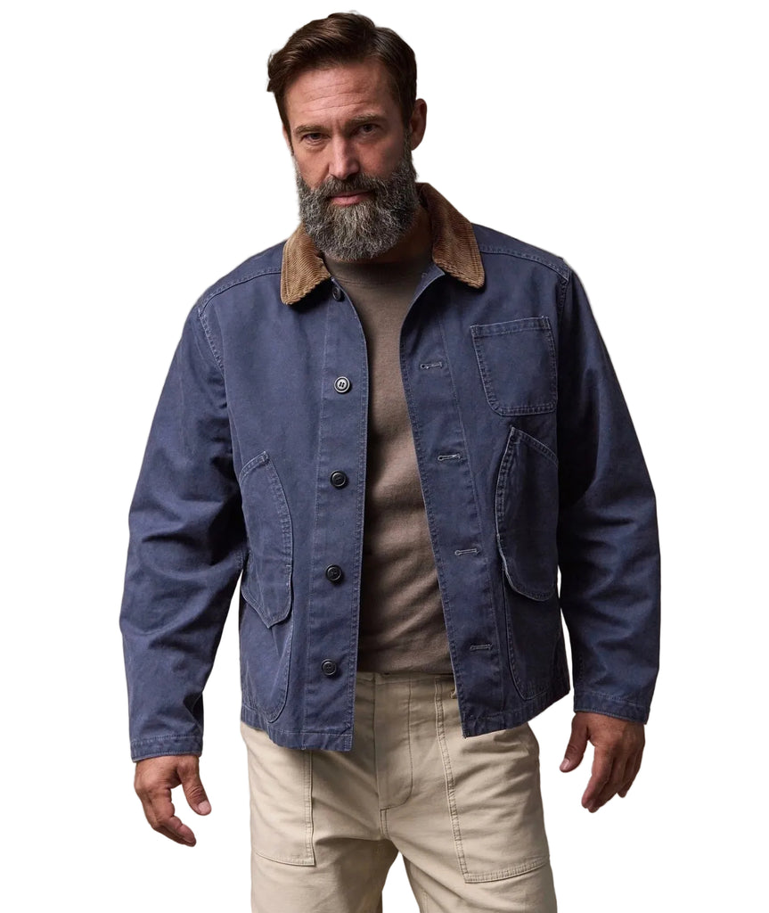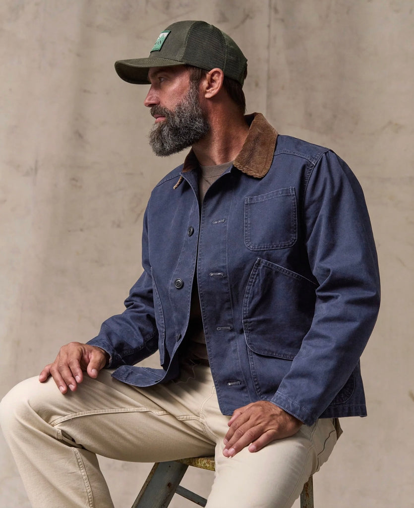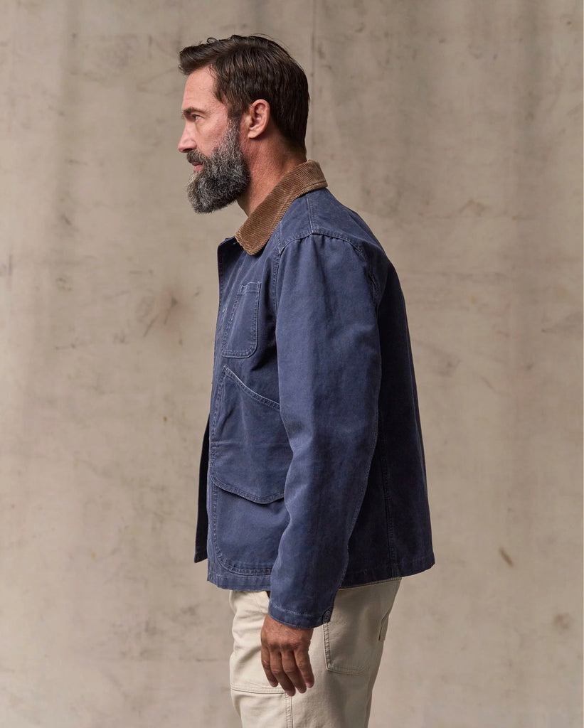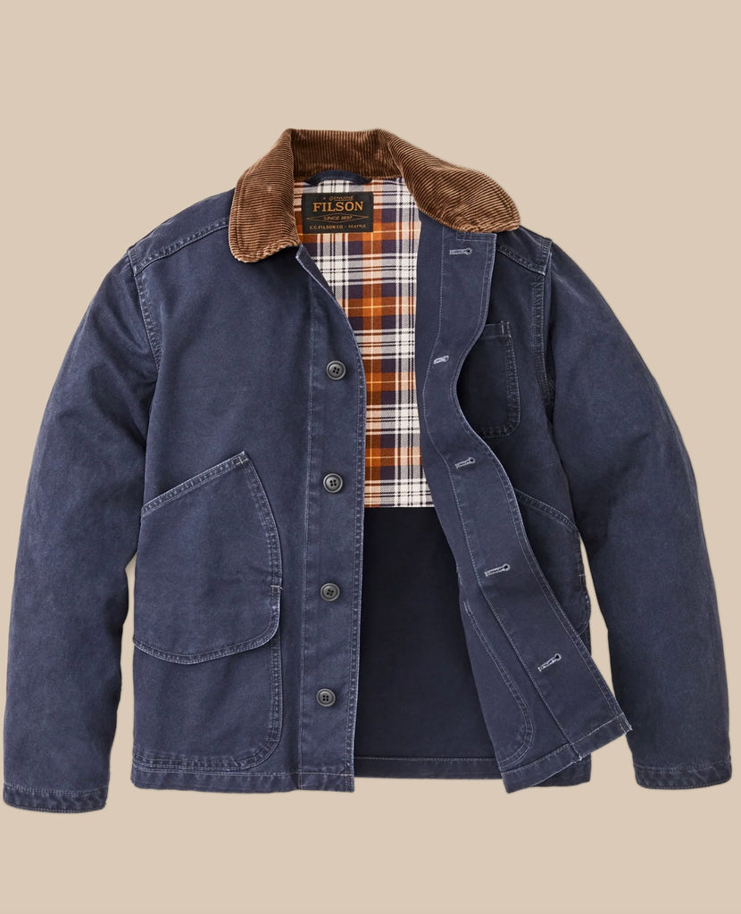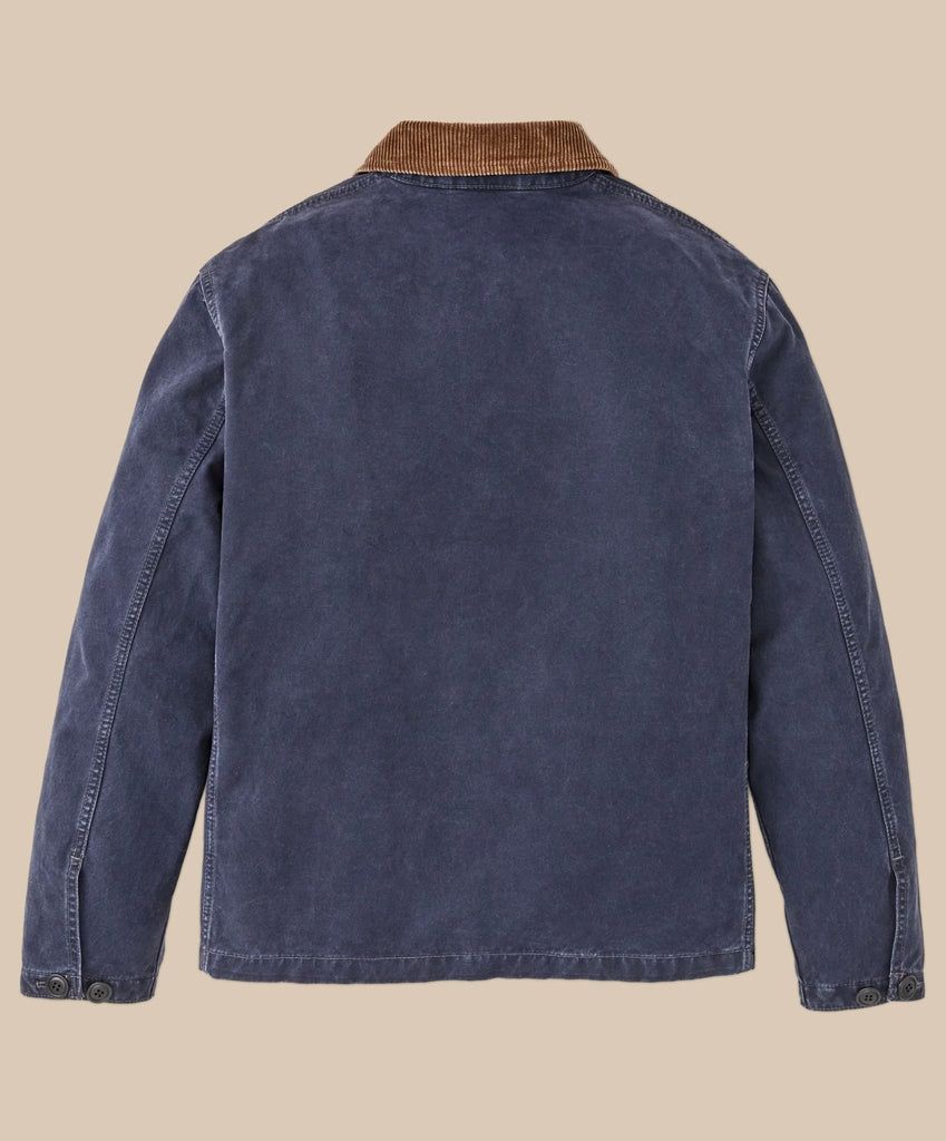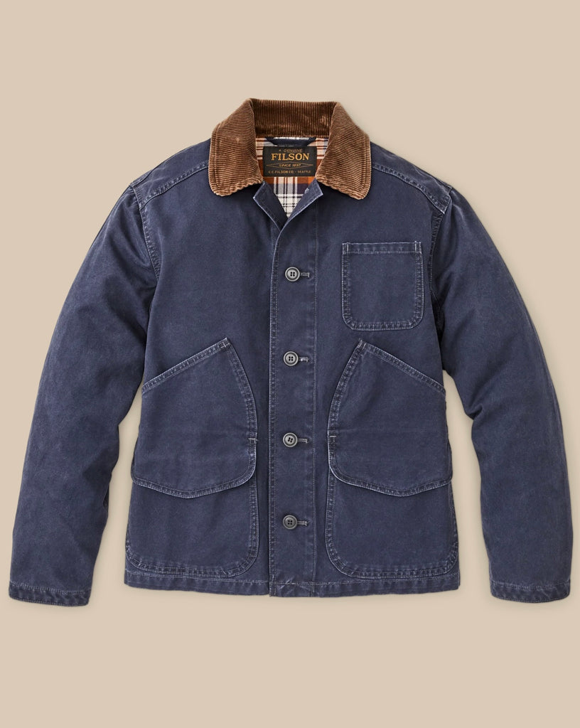 Filson's Canvas Outfitter Jacket is a straightforward barrier against brush, thorns, and flying wood chips. The sturdy 10.5-oz. canvas is tightly woven for excellent tear strength and wind resistance. Strong, chip-resistant buttons secure the front closure and adjustable cuffs. The hand pockets double as flaps for the cargo pockets, a design taken from our vintage field coats. Corduroy-lined collar.