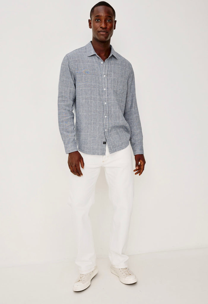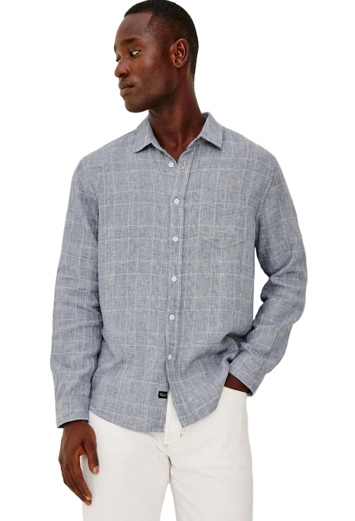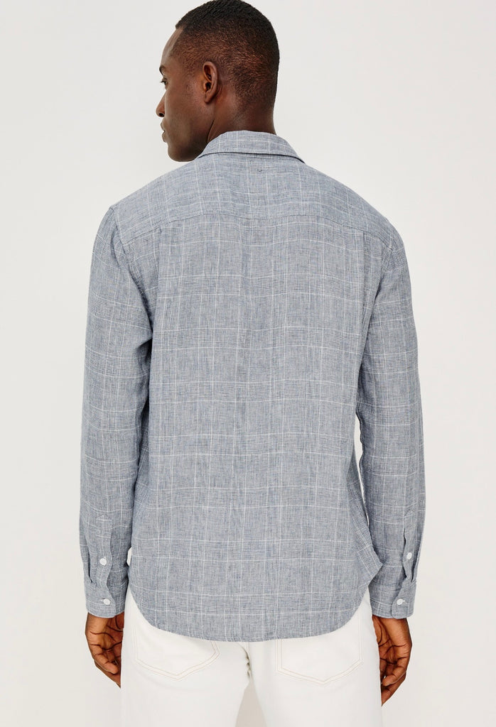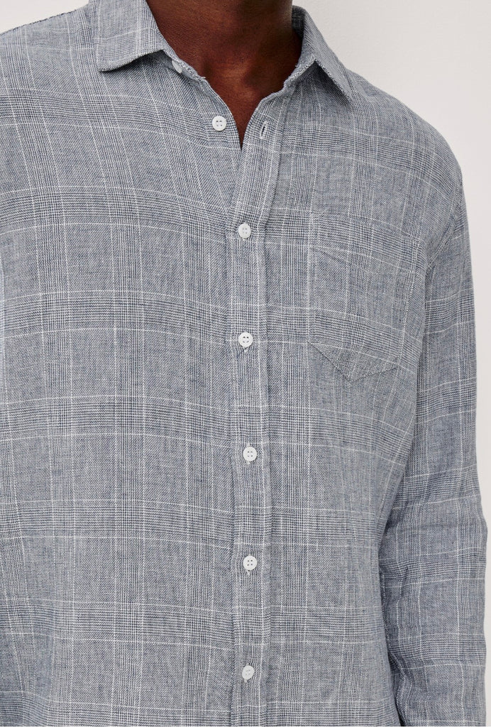 The Gracy is a button-up shirt crafted from chunky yarn with a loose weave and subtle houndstooth pattern. Relaxed in fit yet refined in feel, it features a classic collar and a single chest patch pocket.