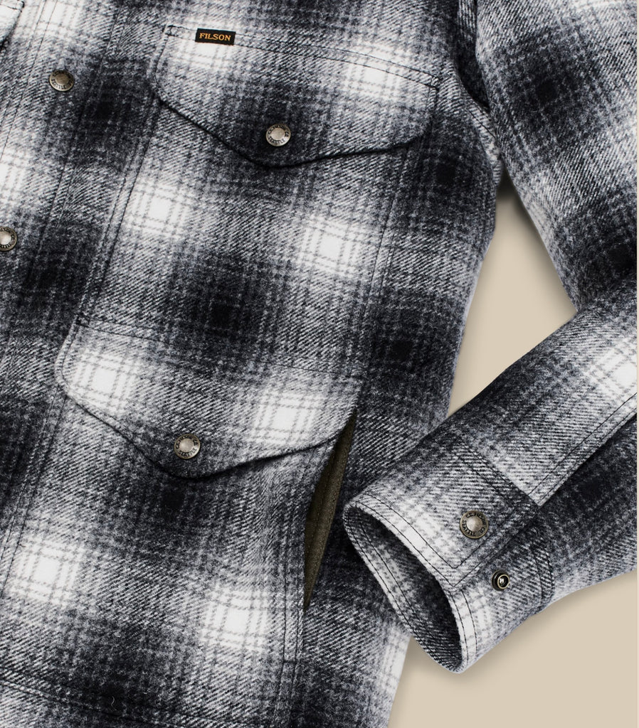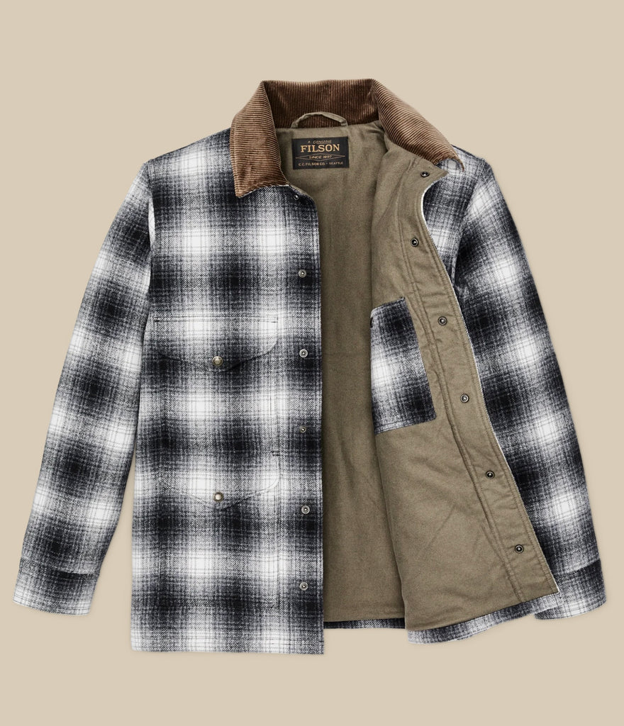 This insulated Cruiser brings three layers of warmth into one jacket. The shell is a midweight 8-oz. wool blend reinforced with nylon for lasting strength. Inside, lightweight polyester insulation holds heat without bulk. The torso is lined with Filson's Alaskan Guide flannel--a brushed-cotton workhorse trusted by outdoorsmen for more than 30 years.