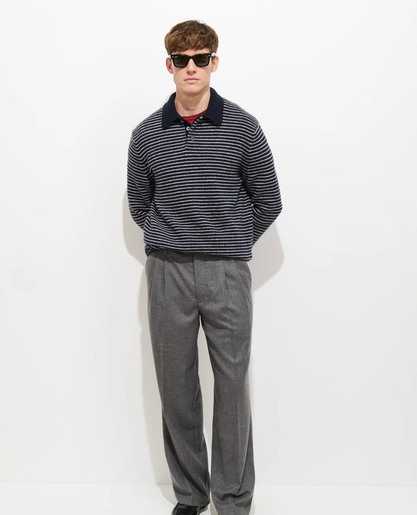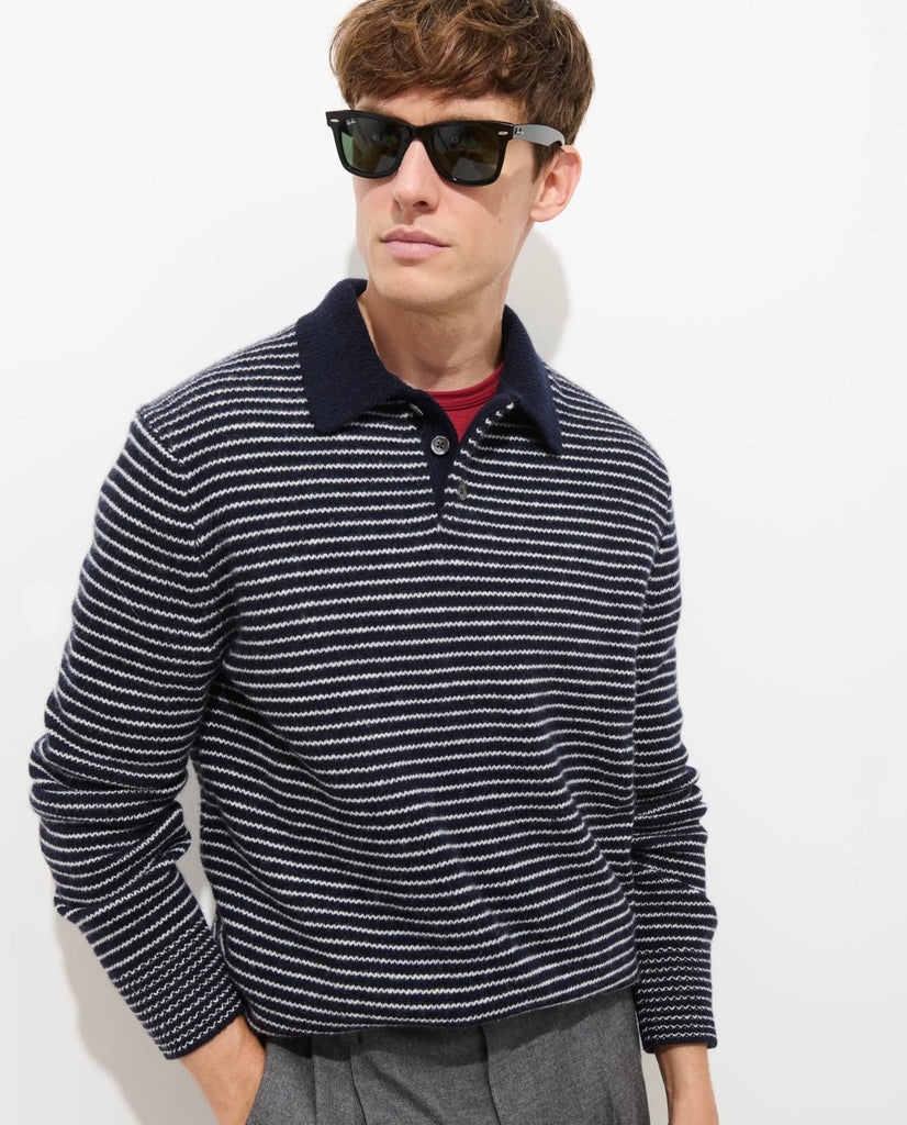 A sweater polo made with superfine chunky ribbed Merino wool.