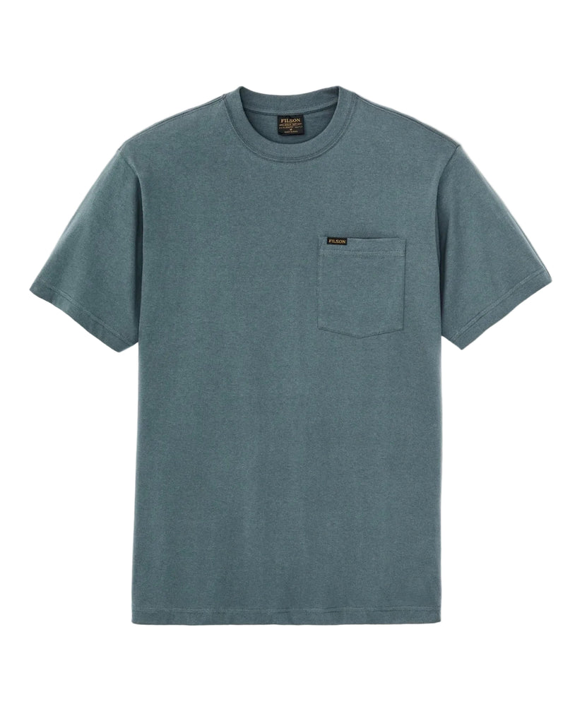 Filson's Outfitter Pocket T-Shirt is a daily essential made with soft 100% cotton. Under a flannel or worn alone in the heat, its next-to-skin comfort sets it apart. The rib-knit collar holds it structure wash after wash. Single chest pocket.