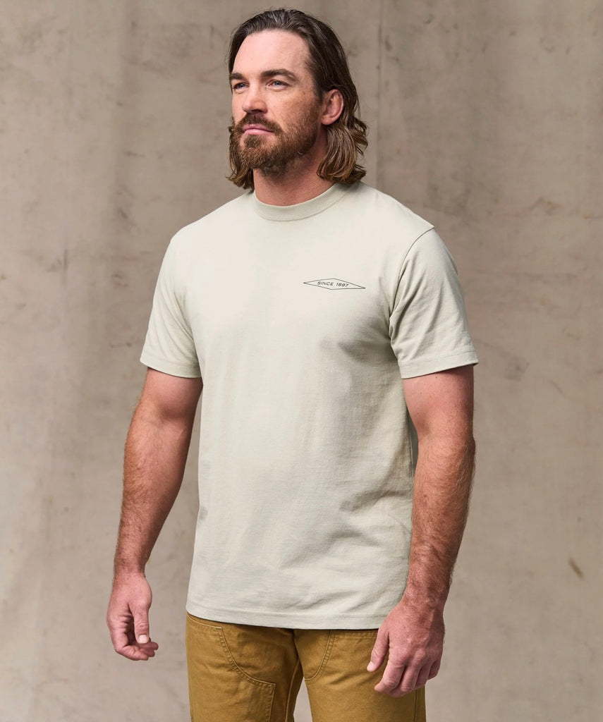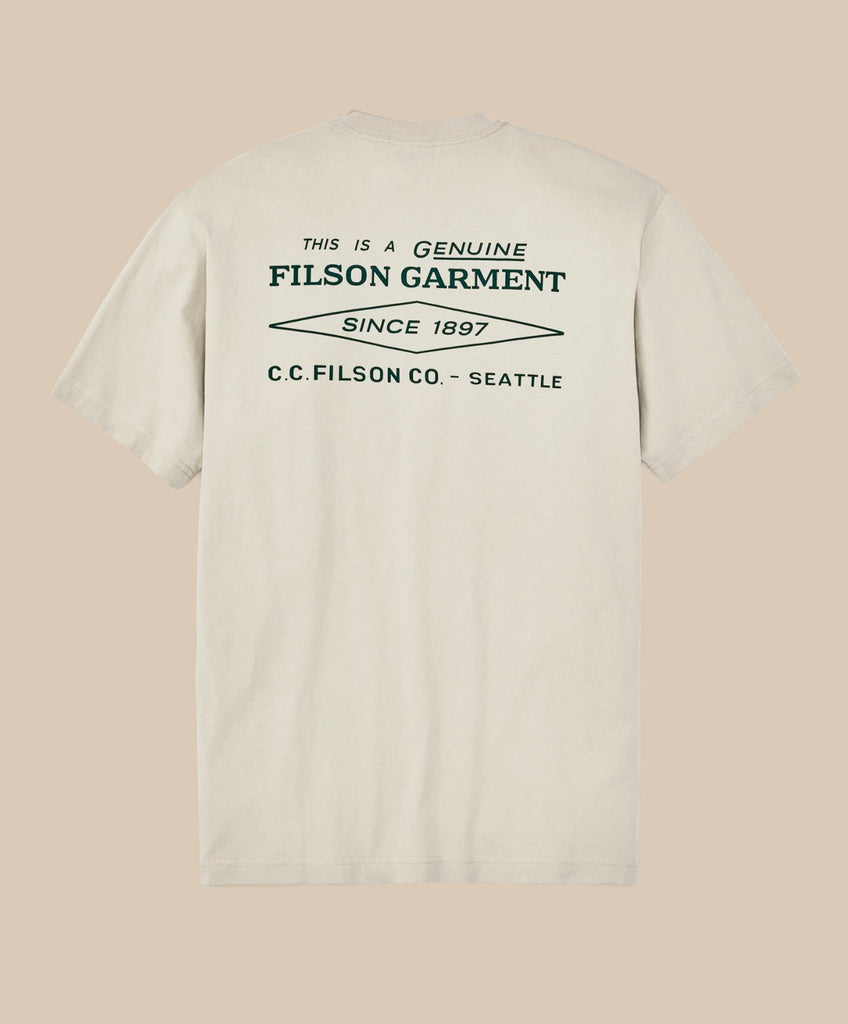 Filson's Diamond Graphic T-Shirt is made from premium Peruvian cotton for outstanding next-to skin comfort. The 5.2-oz. fabric is comfortable in the summer heat or as a first layer when the temperature drops. The 1x1 rib-knit collar retains its shape. Custom Filson logo graphic.