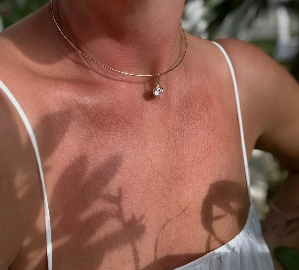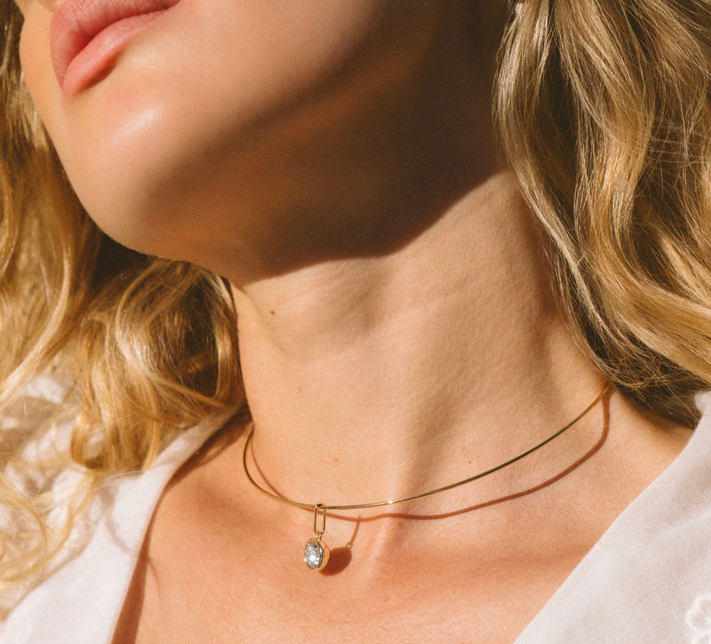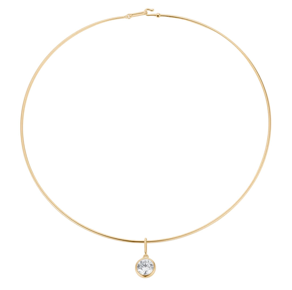 The sleekest style! The Dottie Choker necklace features a round dome-shaped CZ charm on our classic gold choker. For the girls who want a little bit of necklace, and a whole lot of sparkle.