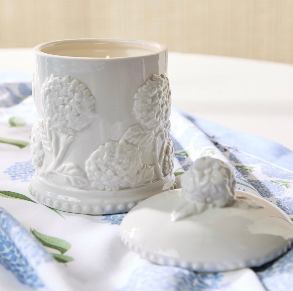 Indulge in the soothing ambiance of the Hydrangea Relief Filled Candle. Handcrafted from fine bone porcelain, this elegant candle imbues your space with a fresh blooms scent, creating a serene atmosphere. The intricate hydrangea relief design adds a touch of botanical charm to your decor!