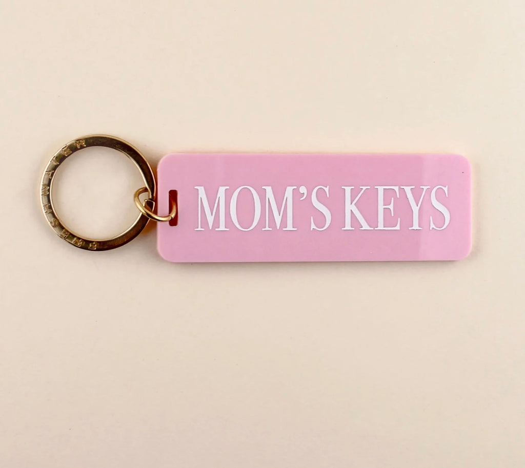 Mom's Keys Keychain is a cute way for moms to distinguish their set of keys from the rest of the family! This key fob is made-to-order and handcrafted from our high-quality acrylic and solid brass hardware.