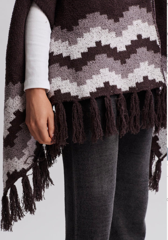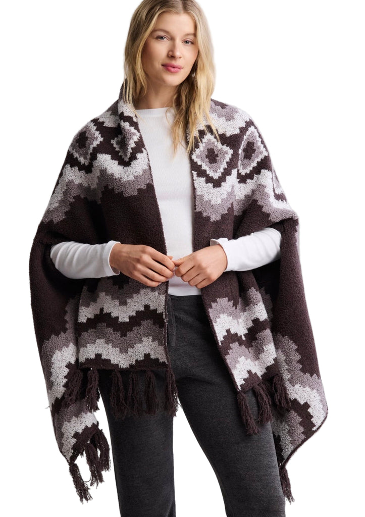 Turn heads and add a touch of sophistication to any outfit with the CozyChic® Mosaic Wrap! This top-selling wrap is a statement piece that effortlessly blends style with comfort. Designed with slit openings for your arms and a chic fringe trim at the bottom edges, it offers a modern, laid-back look that’s perfect for any occasion.
