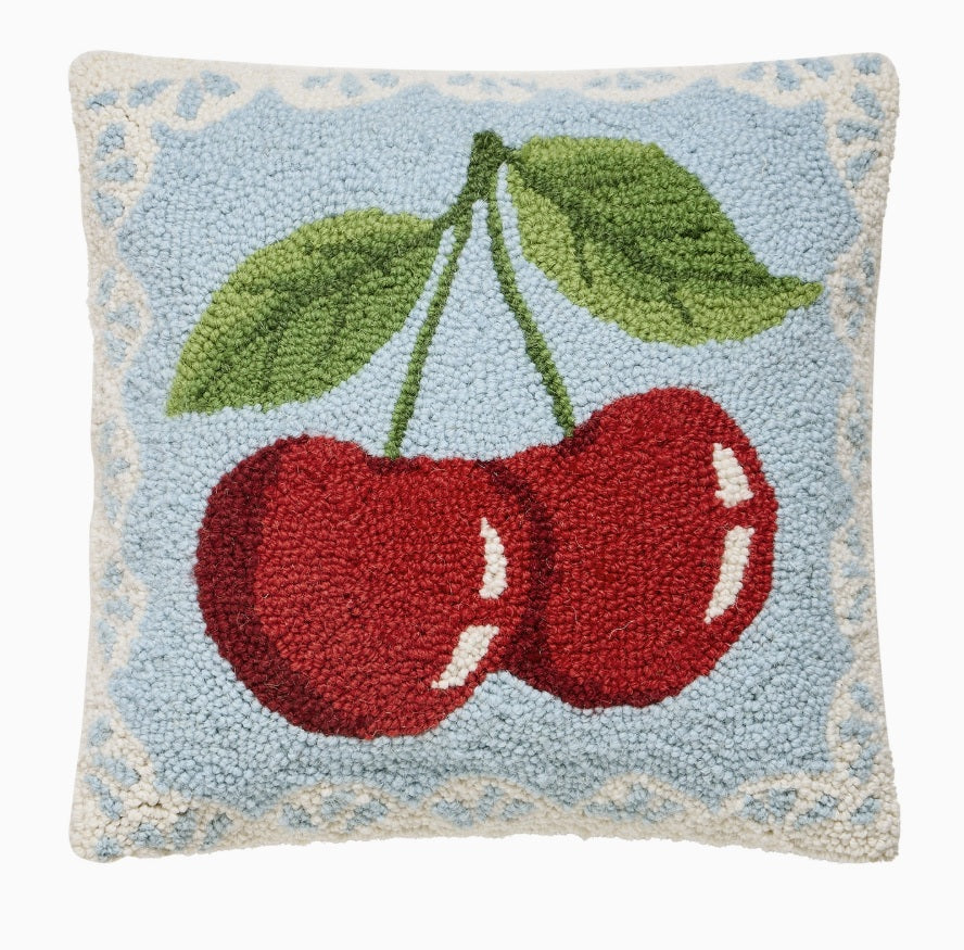 Add some cheer to your living space with this adorable cherry print hook pillow.