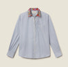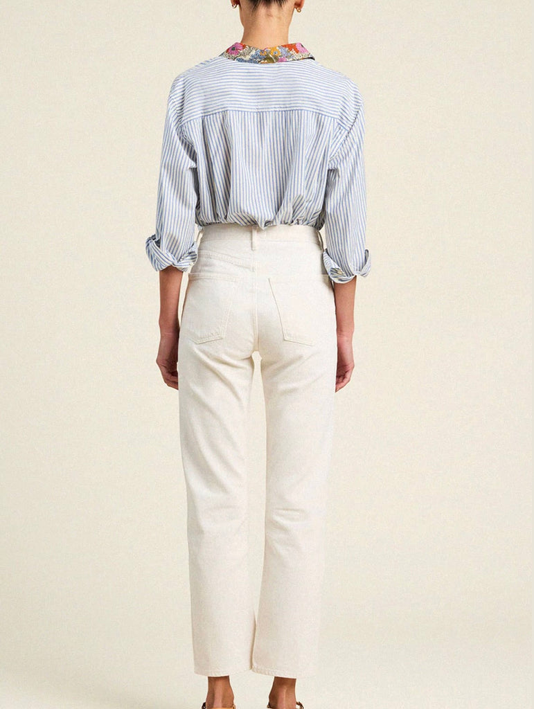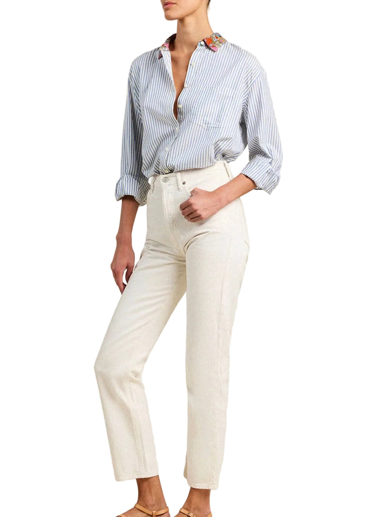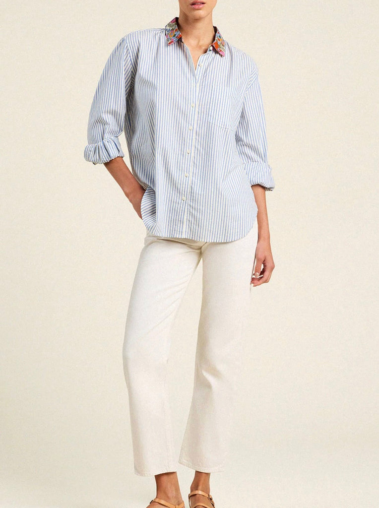 The Blake oversized boyfriend shirt is a button-down meant to live in your wardrobe for years. It truly gets better with each wear, growing softer every wash. This shirt has an oversized boyfriend fit completed with antique white buttons and a single chest pocket. Shown here in Seaside Stripe and made from coastal cotton twill.