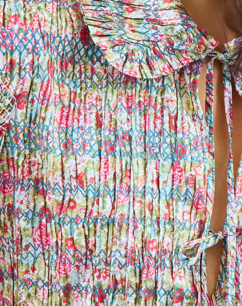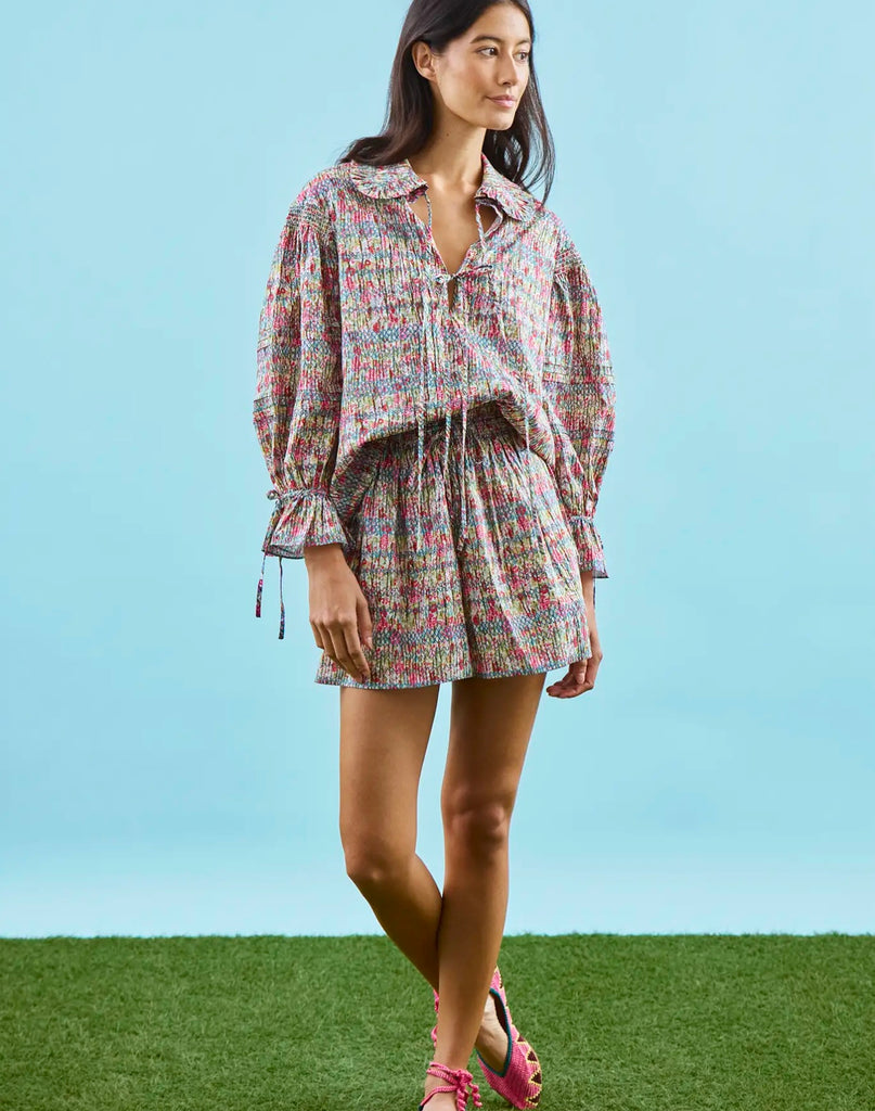 Introducing the Julia Top, crafted in smocked cotton from Liberty Fabrics. A soft ruffle collar frames the neckline, while pintuck detailing and pleated full sleeves add refined texture and movement. Designed with an easy pull over silhouette, Julia brings effortless sophistication to everyday dressing.