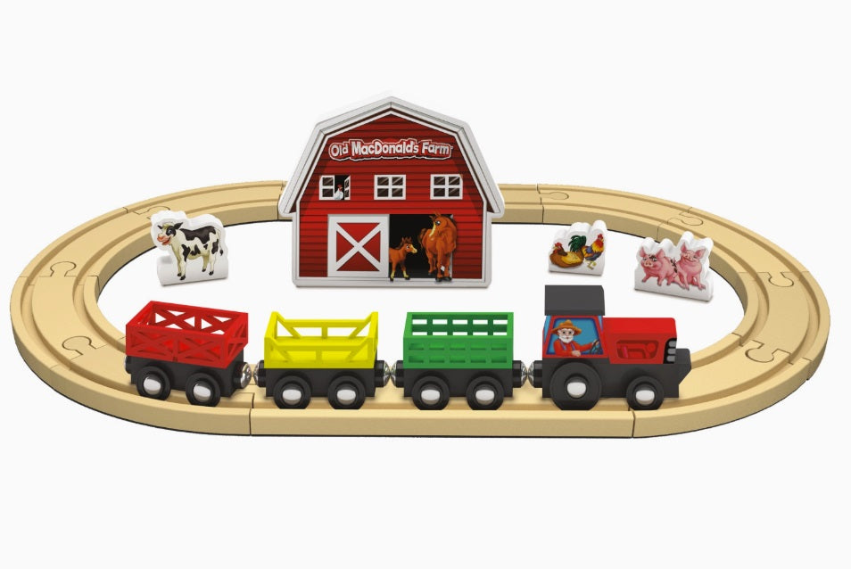 This wooden train set is perfect for children who love farm adventures. Featuring a Tractor train engine and train carts, kids can load animals and embark on a fun-filled journey. The set includes 1 Wood Magnetic Tractor Train Engine, 3 Wood Magnetic Train Cars, 10 Wood Track Pieces, and 4 Play Pieces, making it a comprehensive wooden toy train set.