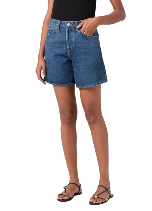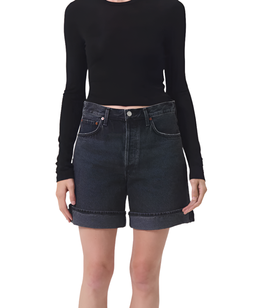 The Dame Short is crafted from regenerative cotton in dark vintage indigo denim, offering a rich, timeless look. With a high-rise fit, relaxed silhouette, and wide leg opening, these shorts offer the perfect blend of ease and style. The clean hem adds a crisp finish, making them perfect for pairing with a simple tank or oversized shirt for an effortlessly elevated summer outfit.