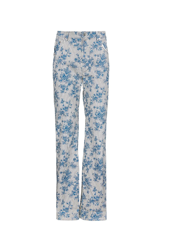 The Lakelynn Pant in Cornflower Toile brings a playful twist to a classic straight-leg denim silhouette. Crafted from stretch cotton denim for comfort and ease, it features traditional five-pocket construction and a front fly with zipper and button closure. The custom toile print adds just the right amount of charm, making it a standout staple for fall and beyond!