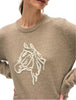 Cozy up in this charming crew neck sweater featuring a playful horse embroidery that adds a touch of whimsy to your wardrobe! Crafted from a soft cashmere blend, it offers warmth and comfort with a luxurious feel. Perfect for casual days when you want to stay stylish and snug, this sweater brings a fun, equestrian-inspired twist to your everyday look.