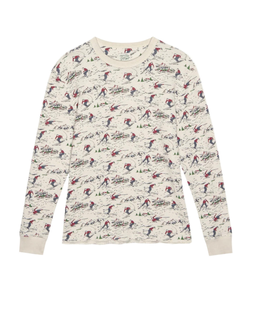 Inspired by the classic long johns worn as kids, this updated take on a nostalgic long johns has a classic crew neck neckline and raw hem for authenticity and ease. Cut in the coziest waffle thermal fabric knit into a bold, wide stripe-this group is perfect for layering under puffers!