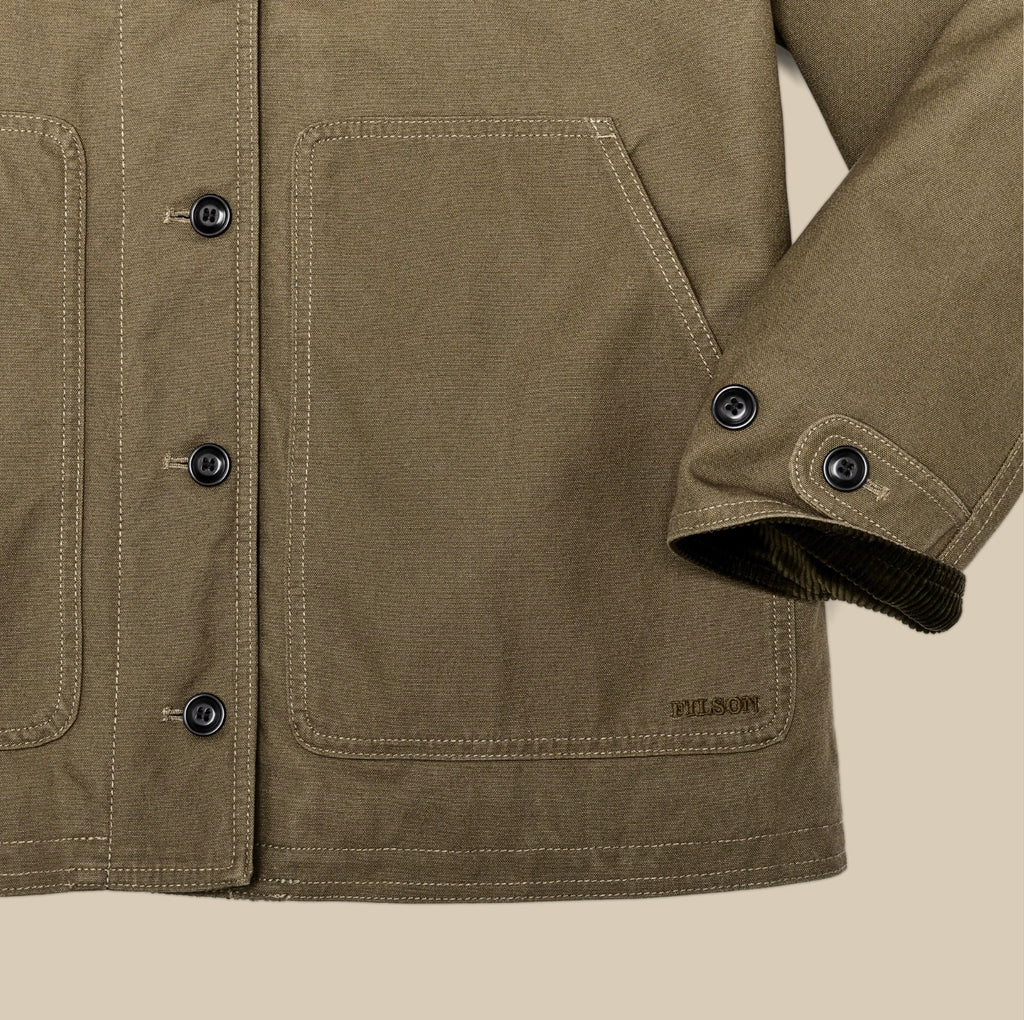 This classic jacket provides dependable outdoor protection from wind, brush and brambles. Designed with straightforward simplicity, it works just as well for daily use. The durable canvas will gain a timeworn, broken-in character with use, for decades of versatile wear. The collar, cuffs, and front placket are lined with thick cotton corduroy for comfort.