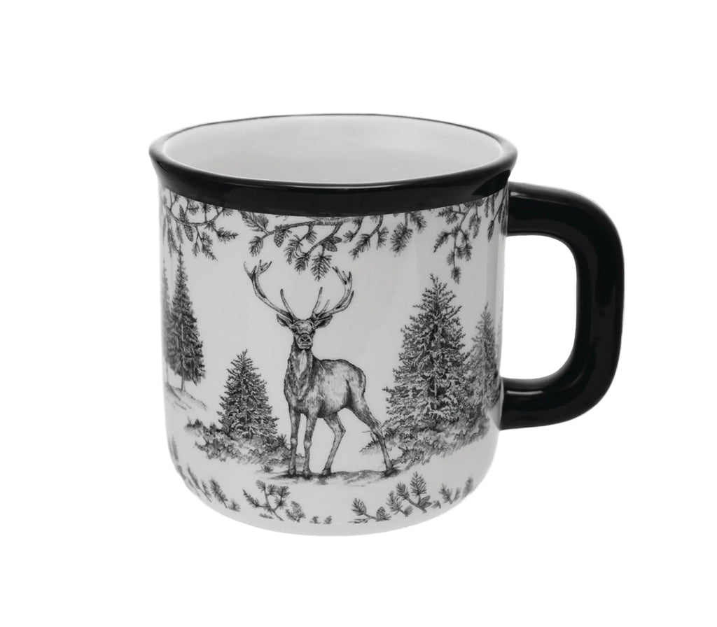 This beautiful ceramic mug features a peaceful woodland deer scene with a sturdy handle for slow, crisp mornings and large cups of coffee.