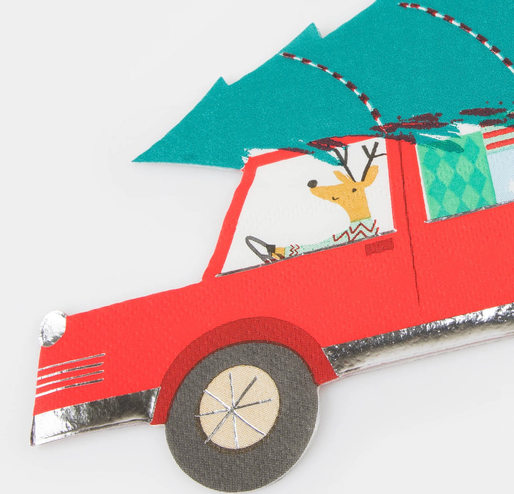 The holidays aren't complete until the Christmas tree arrives, and this reindeer looks very happy with the one they've got! These cheerful colorful napkins are guaranteed to delight kids, and adults, and will add a fun touch to your special meal.