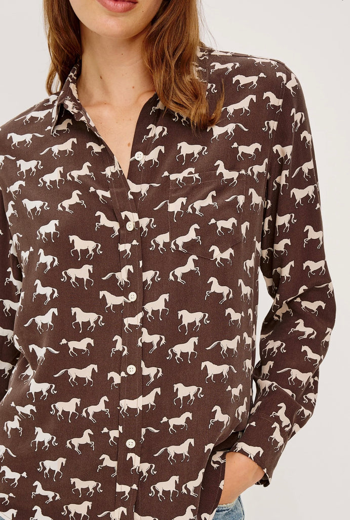 Find your wild side with the Kate, a polished yet playful addition to any outfit. Featuring traditional shirting details and a unique print bound, call on this ultra-soft, washed silk button-down to complete a statement-making ensemble.