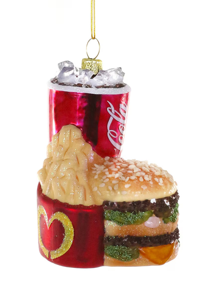 Bring a bite of nostalgia to your holiday décor with the McDonald’s Fast Food Ornament. Featuring mini versions of classic drive-thru favorites — think burgers, fries, and fizzy sodas — this playful piece captures the joy of late-night snack runs and childhood Happy Meals. Bright, bold, and instantly recognizable, it’s a fun standout on any tree.