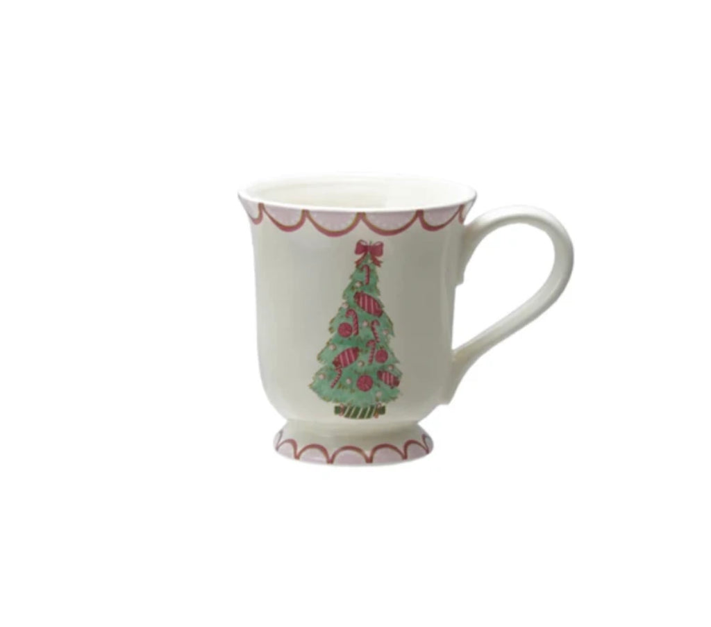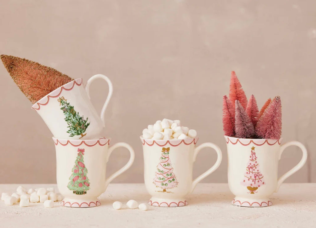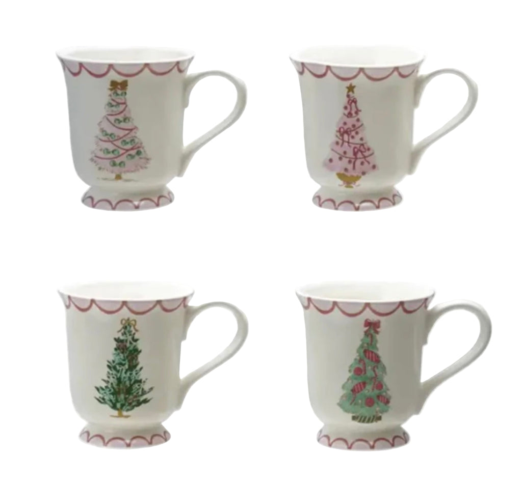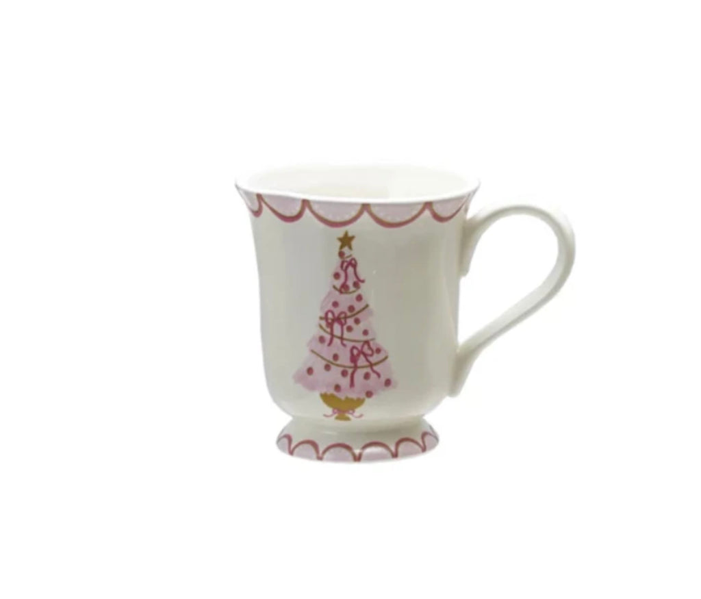 These whimsical Christmas tree mugs bring instant cheer to your morning coffee or evening cocoa, each one features a festive tree design trimmed in pink scallops, adding a sweet and playful touch. Sold separately, they’re perfect for cozy holiday moments or gifting to someone who loves a little merry with their mug.