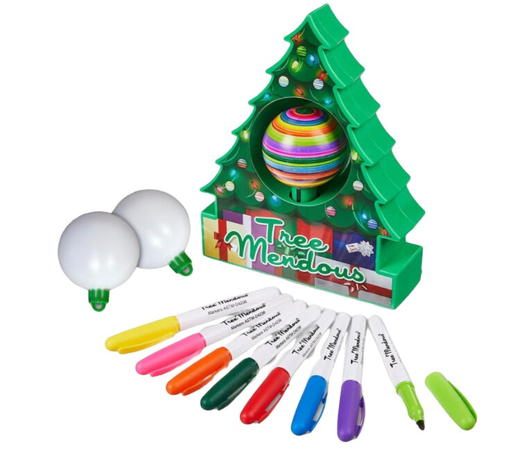 With the Treemendous Ornament Decorator your family can customize colorful keepsake ornaments while starting a new tradition. The patented spinning action makes decorating easy and fun! Simply place one of our ornaments in the decorator, turn the decorator on, and touch a marker to the spinning ornament to create endless designs! Personalized ornaments make great gifts for grandparents, teachers, family and friends. Additional ornaments sold separately.